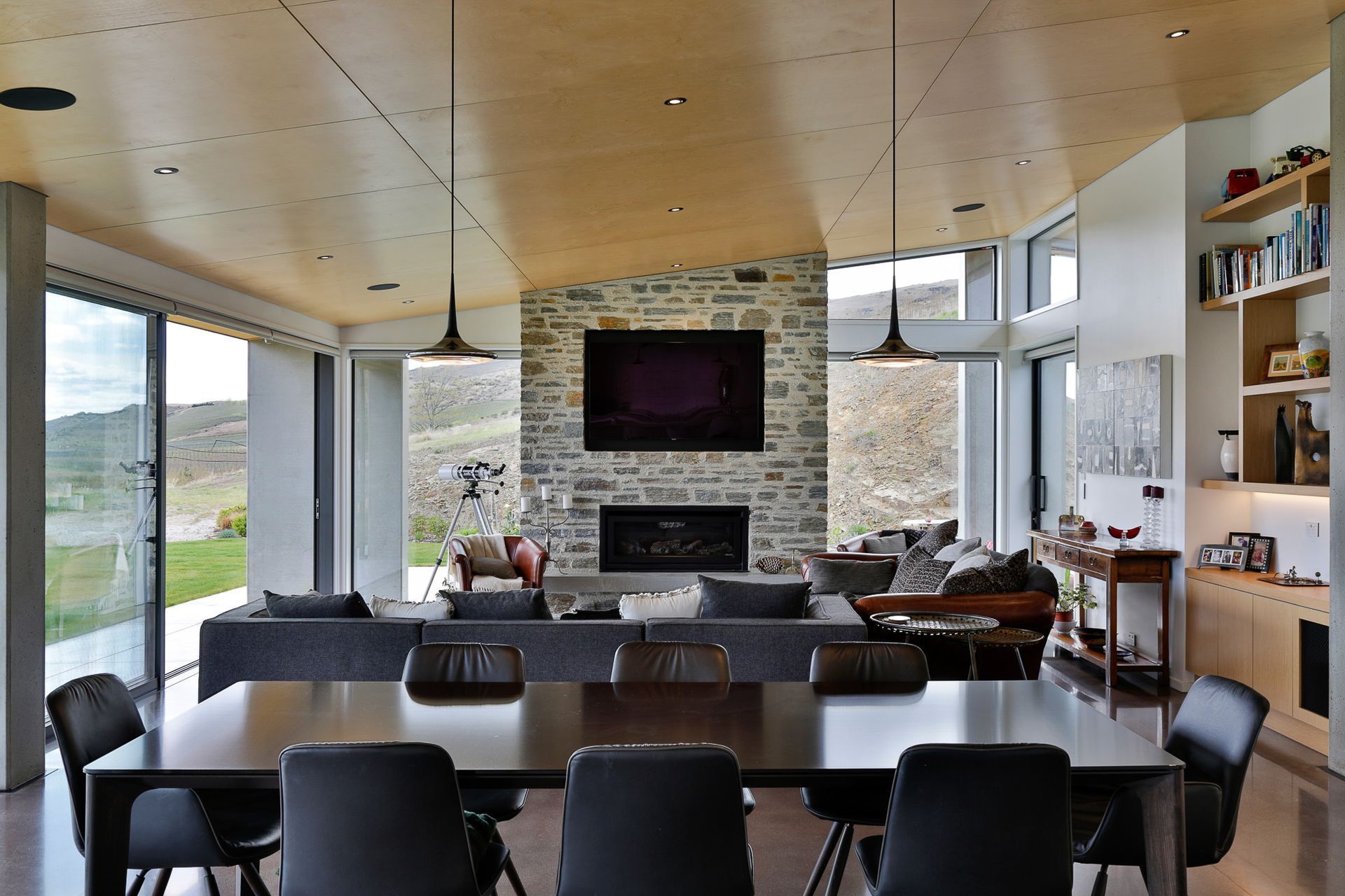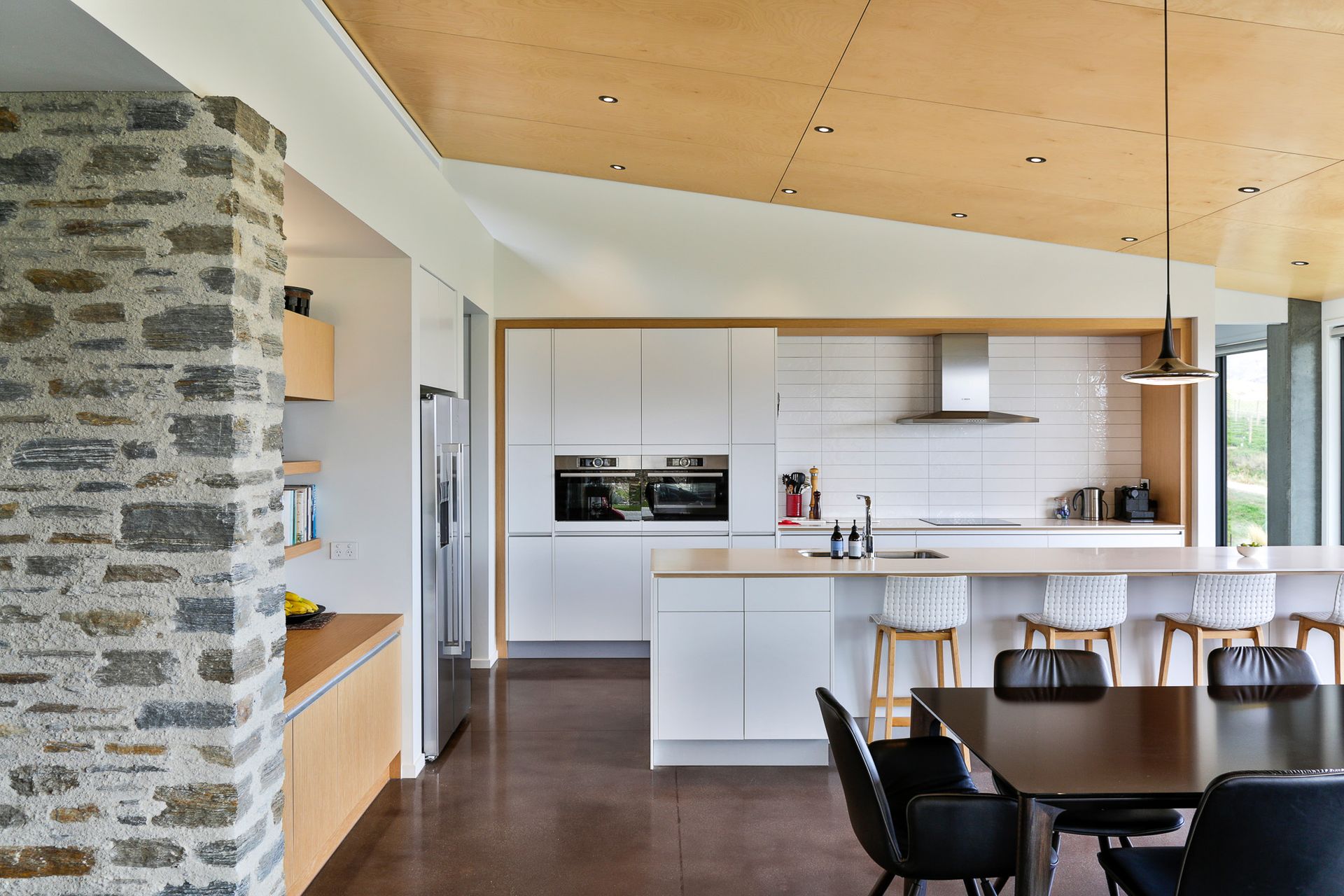The home was designed to be thermally and energy efficient. High quality materials were used not only for aesthetic appearance but also their durable qualities to face the elements of Bannockburn. We created a feeling of home using a beautiful combination of materials - significant amount of concrete block, precast concrete, heated concrete floors, timber ceilings & bespoke timber joinery.