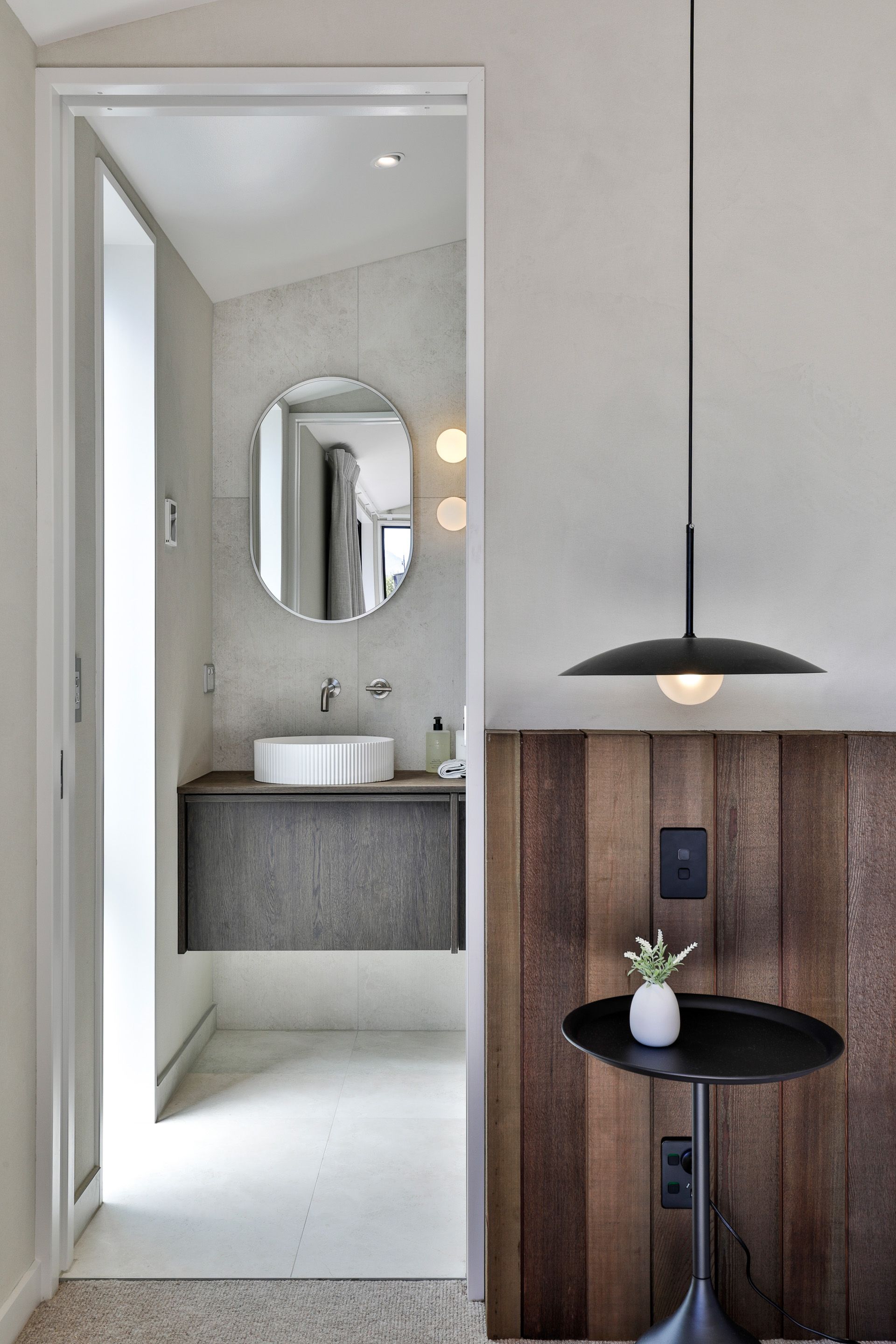 A secondary lounge, conceived as a media snug, offers spatial variation and the opportunity for retreat. Heating is addressed through a high-efficiency log burner, supported by a heat transfer system, ensuring year round comfort.