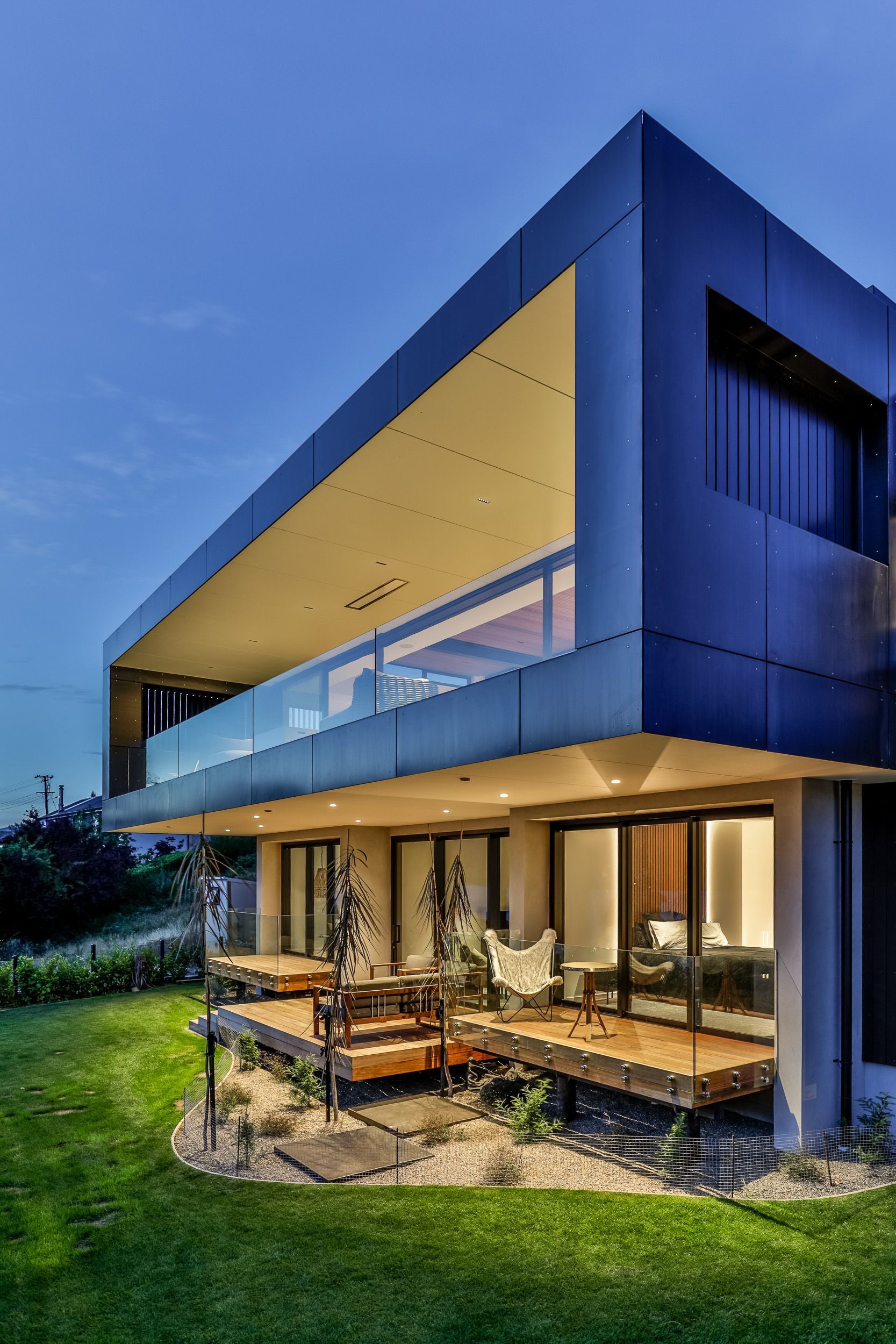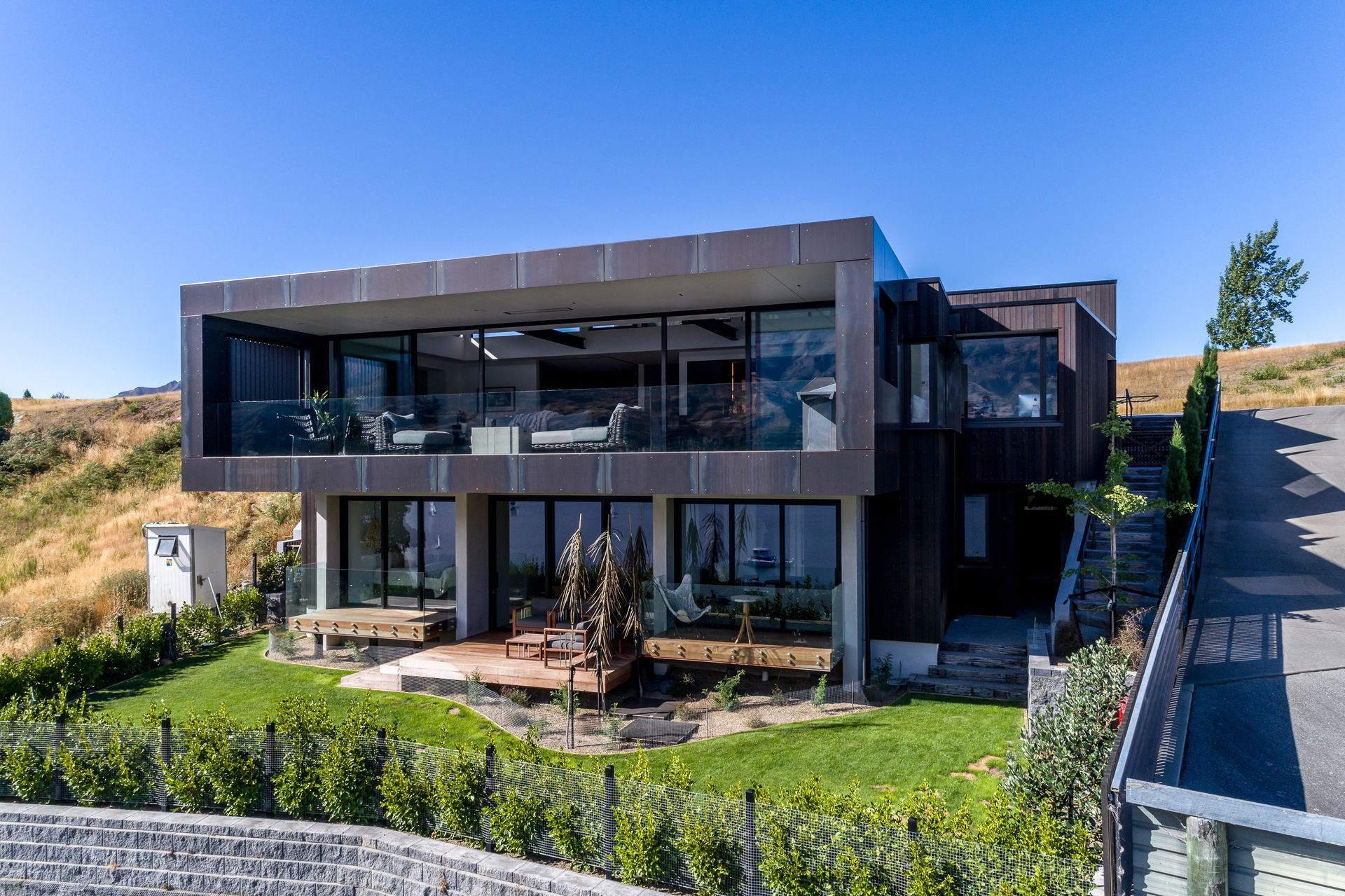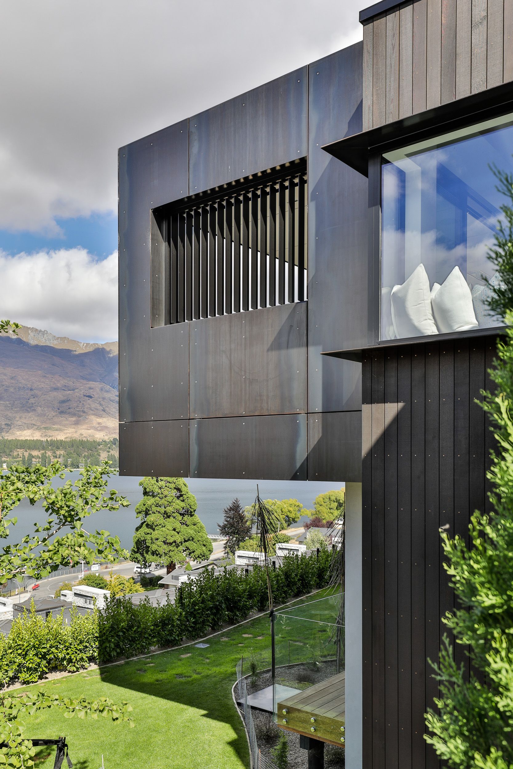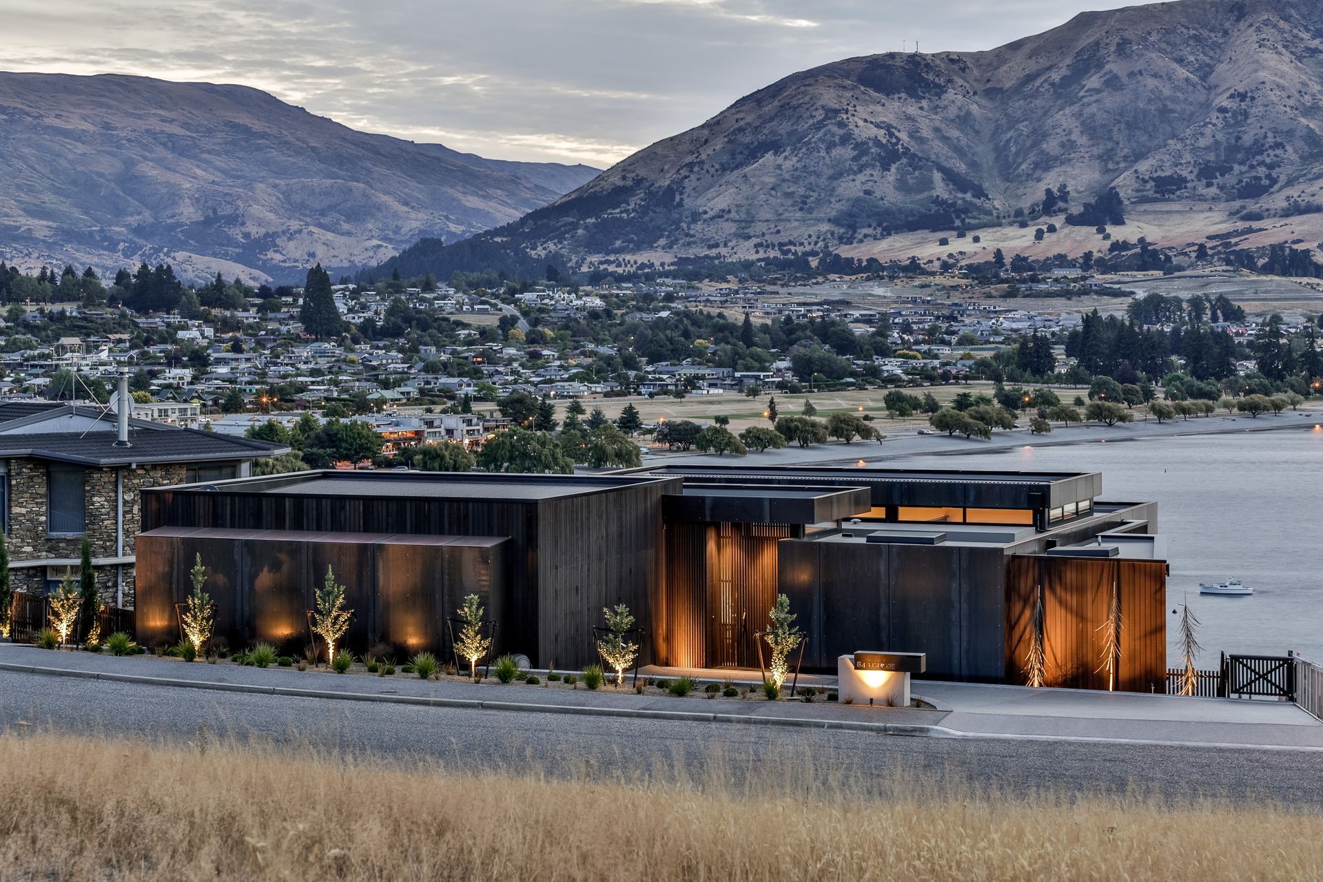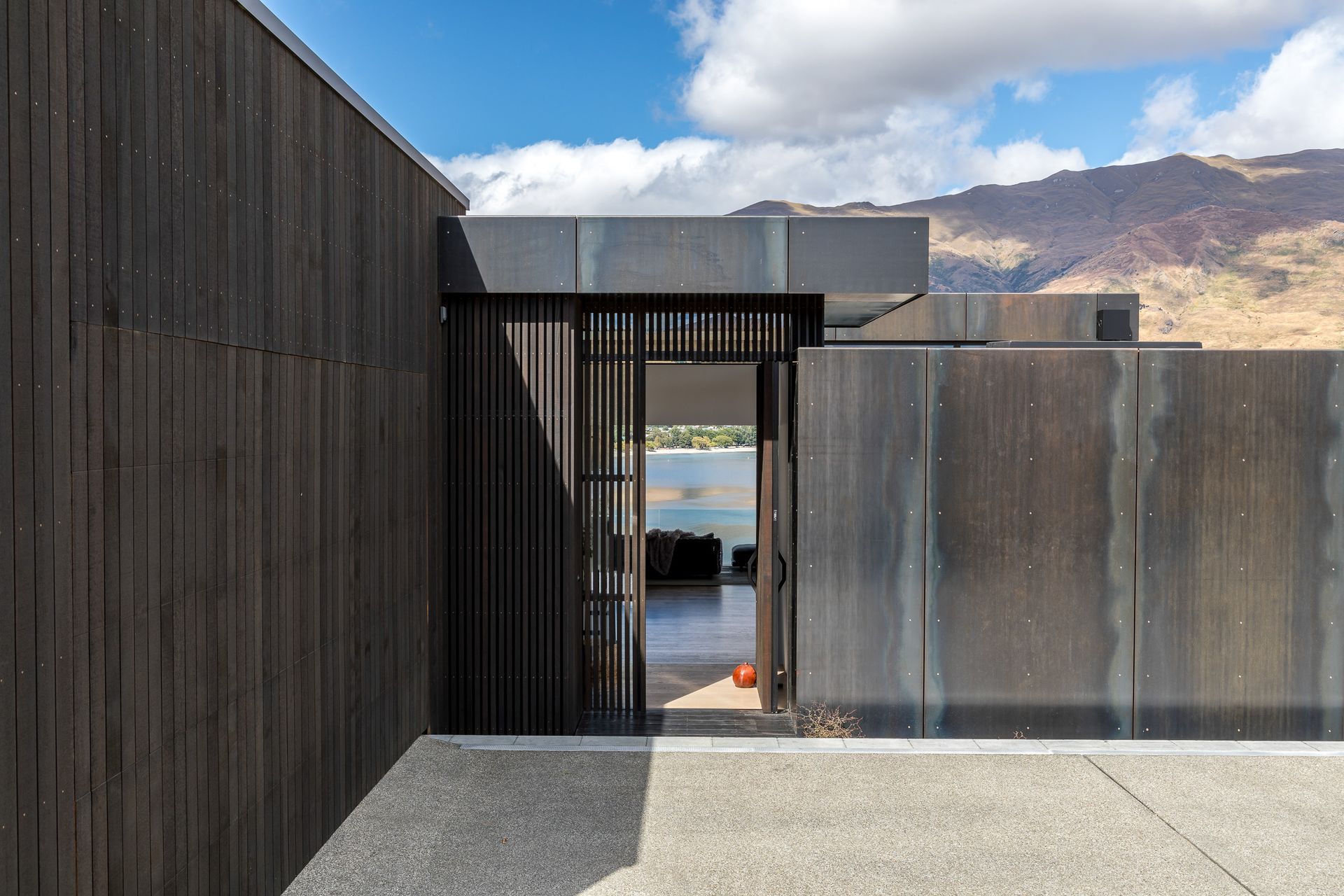 Sitting above Roys Bay in Wanaka, Lismore House appears as a collection of rectangular forms which turn their back to the street and open out toward the views across the bay and Roy’s Peak beyond. Dark steel and timber claddings draw on the natural palette offered by the site’s surroundings.