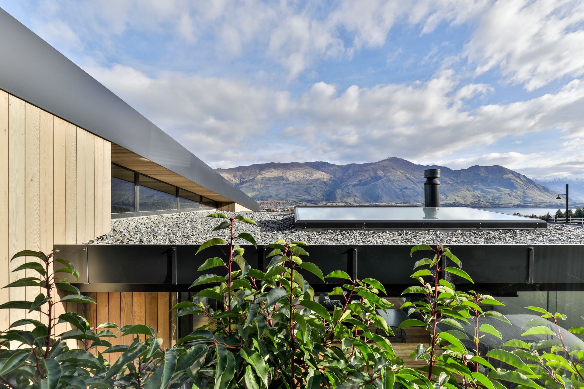 Given the steep site, a multi-storey home was an obvious solution. But what works exceptionally well here is the design of split levels instead of entirely separate storeys. The final design features a series of ascending forms. The multi-half-storey composition maintains the connection between spaces while creating an “arms-length” distance for family members. The garage is at the lowest level, followed by the entry and living spaces at half height, with the five-bedroom level another half height above. This design also maximises the sweeping views of Lake Wānaka and its surrounding peaks.