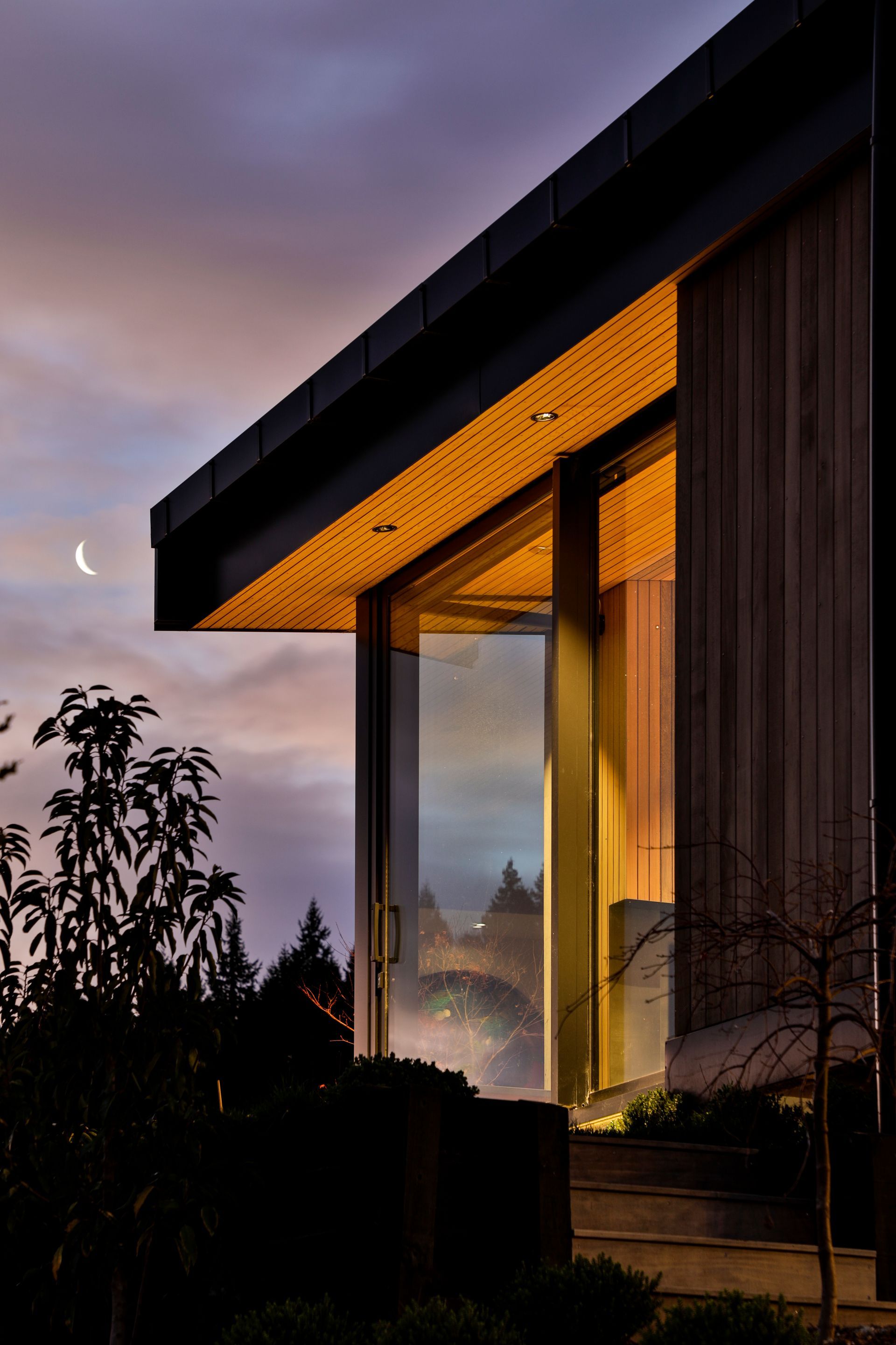 The materials for this home were carefully chosen. The classic concrete of the garage and basement level gives the home a robust foundation. It feels hunkered into the hillside, and conjures up the idea of the garage being a pedestal for the rest of the house to sit on. The timber and steel body of the home features cedar weatherboard cladding, plastered concrete, and Colorsteel tray – all used in a modern, urban way.