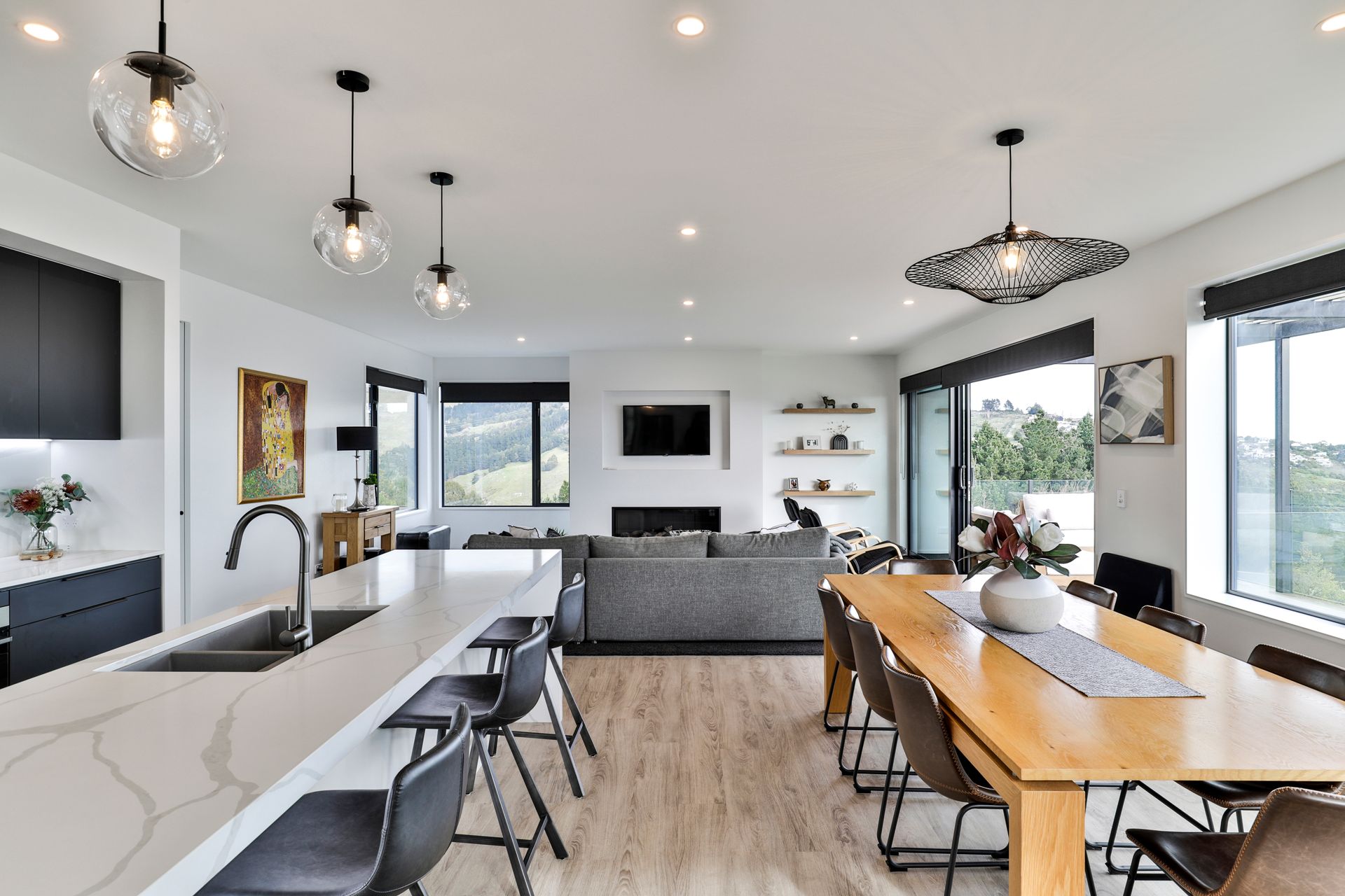Designing a home on a sloping, south facing site overlooking the expansive Canterbury views presented a unique set of opportunities and obstacles. In this case, the focus was on creating a residence tailored for busy professionals who sought to capitalize on the surrounding scenery while making the most of their time spent at home.